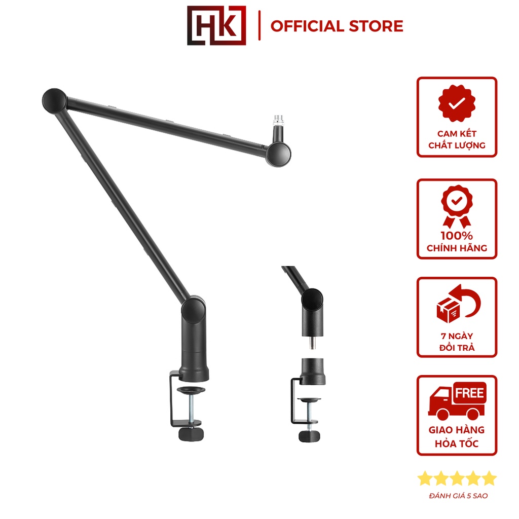 – Lò xo treo kép trên mỗi cánh tay đòn để bảo vệ micrô không bị rung, rơi đột ngột và phát ra tiếng ồn