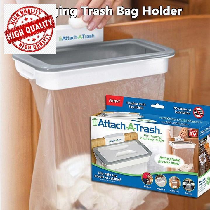 - Chỉ cần ghép túi nilon đựng rác vào miệng giá treo, đậy nắp lại là bạn đã có 1 chiếc giỏ rác cực kỳ tiện dụng. Dùng được ở mọi nơi, chỉ cần có cánh tủ để móc vào là được.Rác đầy, bạn chỉ cần túm lấy phần túi nilon, rút ra mang đi đổ là xong. Cực kỳ tiện dụng & sạch sẽ.