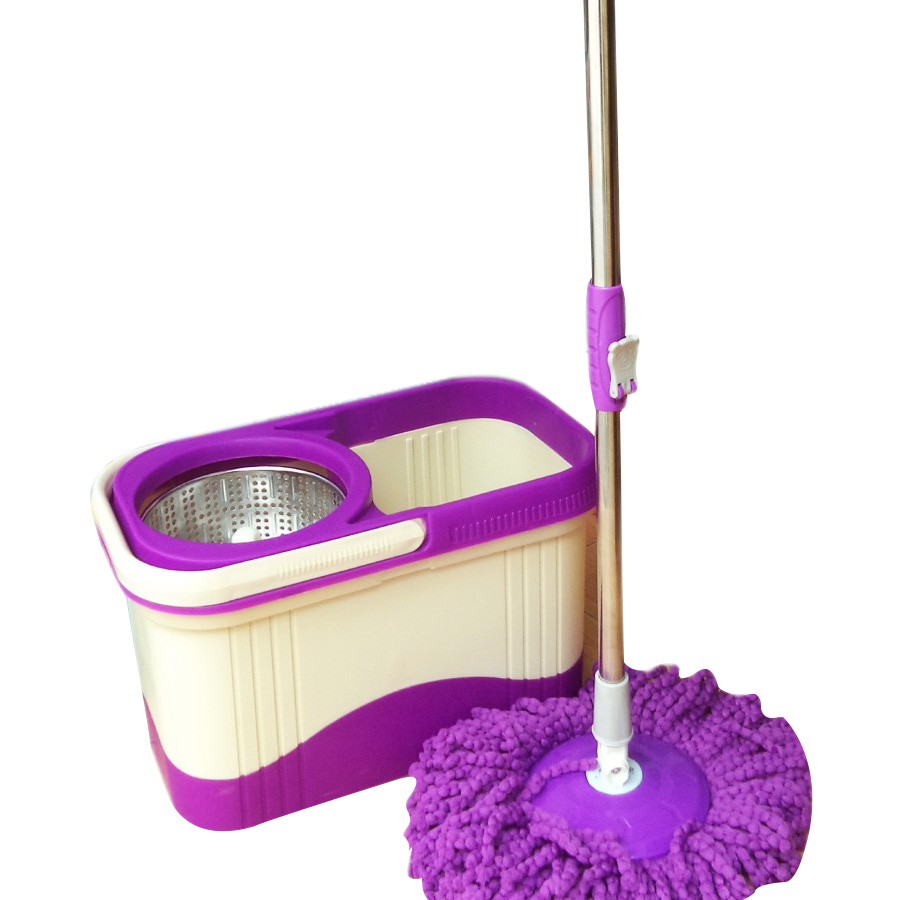 Bộ lau gồm 1 thùng nhựa có rổ giặt nhựa xoay rất nhẹ vắt sạch kho nhanh,1 bộ thân cây inox mâm nhựa nhẹ và chắc, 1 miếng bông lau sợi Microfiber bám thấm hút tốt khả năng vắt khô tự động bằng lực ly tâm, hạn chế động tác cúi gập người, bảo vệ cột sống khi sử dụng.