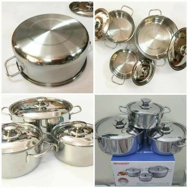 * Bộ ba nồi inox sharp có thể sử dụng lâu dài an toàn cho sức khoẻ, thu nhiệt nhanh, toả nhiệt đều giúp đun nấu nhanh, tiết kiệm nhiên liệu, duy trì độ sáng bóng một cách lâu bền và luôn đẹp như mới.* Khách sỉ liên hệ SĐT: 0987768519