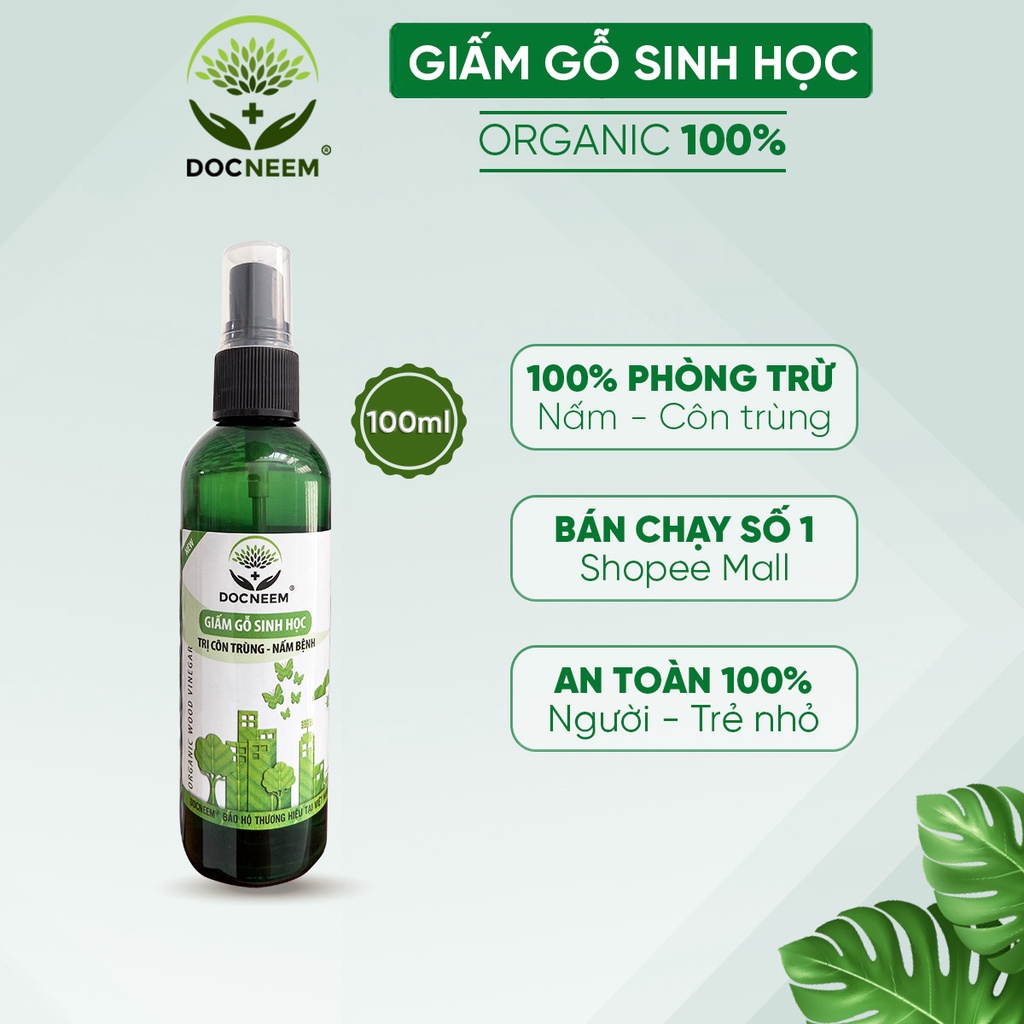 Giới thiệu Giấm gỗ sinh học DOCNEEM phòng ngừa xua đuổi côn trùng, diệt nấm lá cho cây cảnh, rau củ quả, hoa hồng , phong lan 100ml