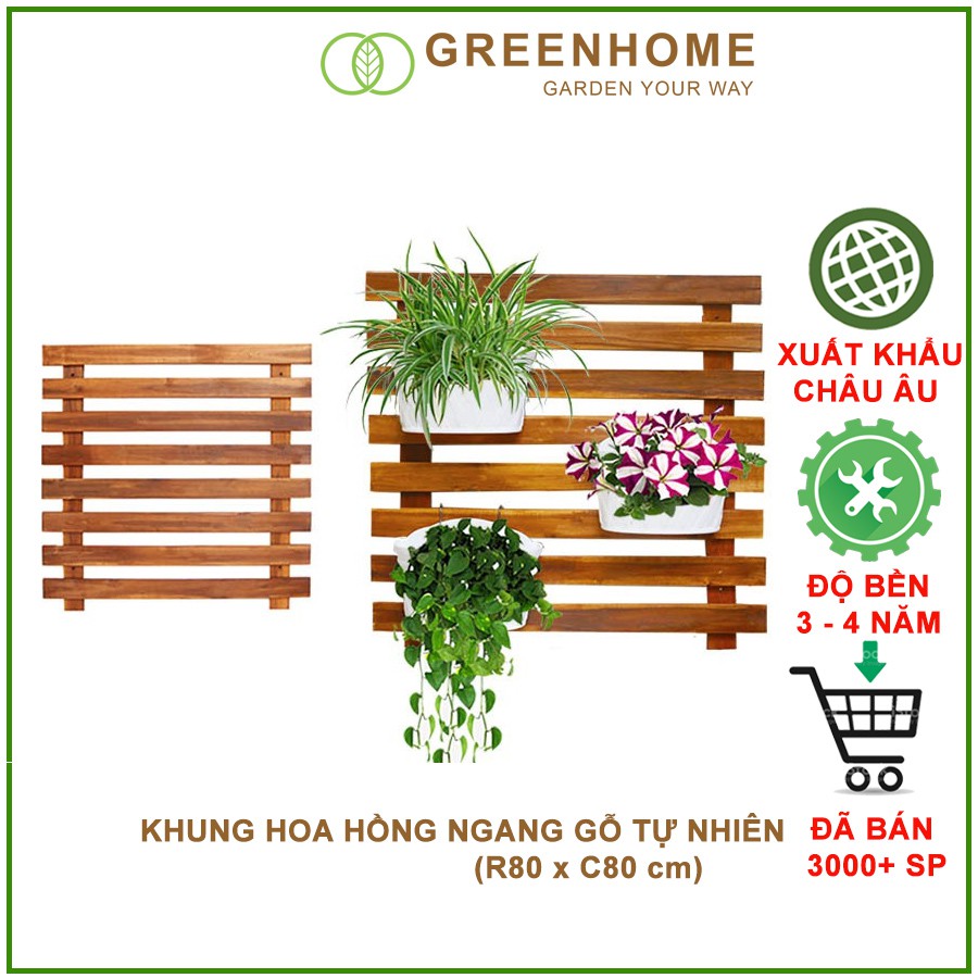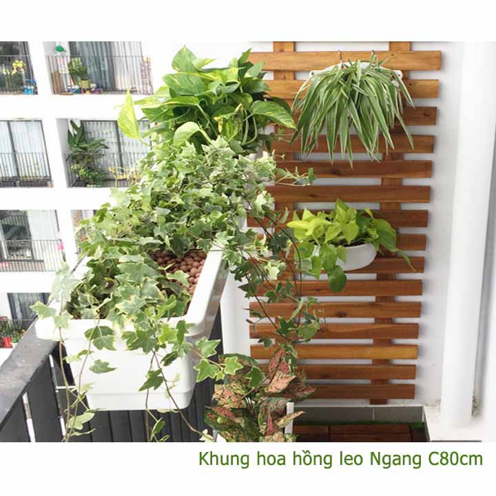 Giới thiệu Giàn gỗ treo ban công, R80xC80cm, gỗ tràm siêu bền, màu gỗ, làm khung hoa hồng leo, bông giấy |Greenhome