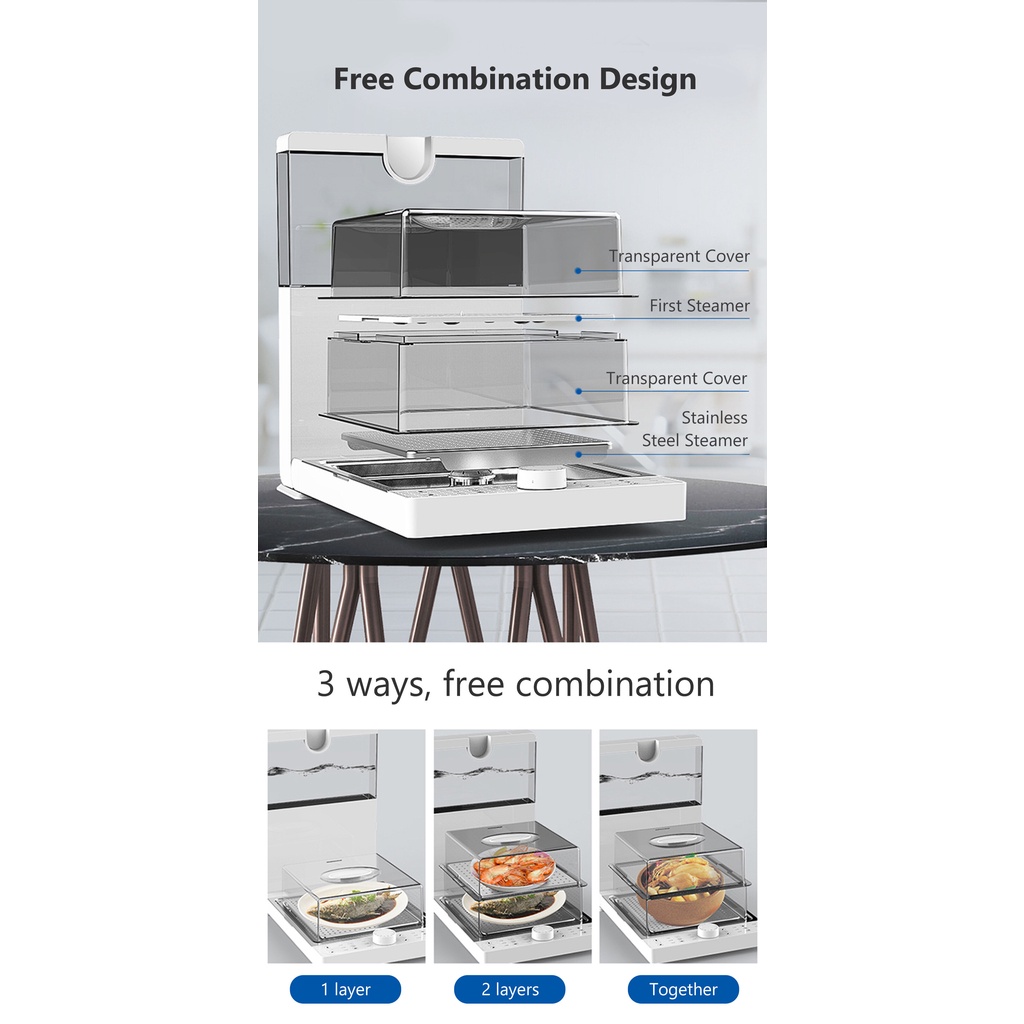 - Khoang hấp và phần nắp được làm từ vật liệu PP có độ trong suốt cao, giúp dễ dàng quan sát được thực phẩm bên trong. Các tấm ngăn giữa được làm từ vật liệu PPO cùng thiết kế các lỗ nhỏ cho hơi nước bốc lên làm chín thực phẩm đều hơn, vật liệu này cũng hoàn toàn an toàn cho sức khỏe người dùng. Và dưới cùng là lớp thép không gỉ 304 có khả năng chịu nhiệt độ cao mà không bị biến dạng.