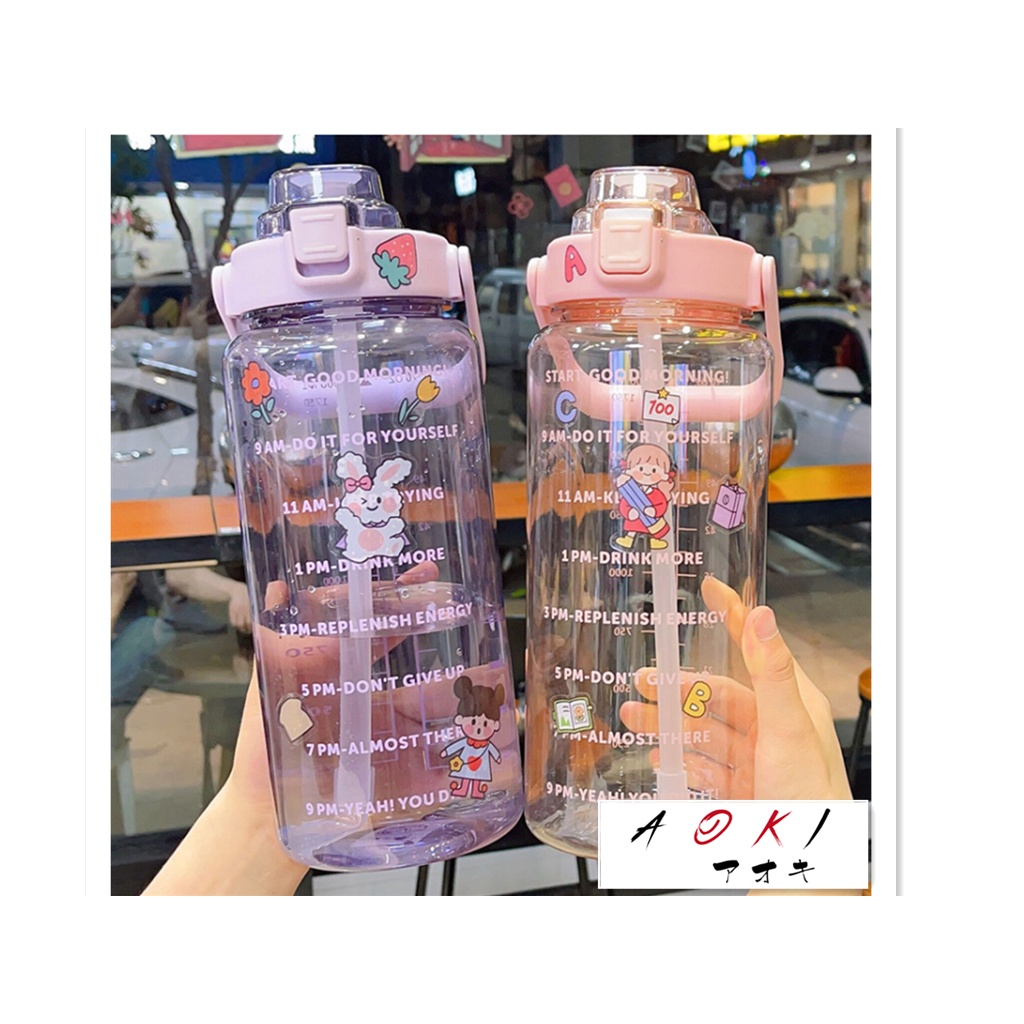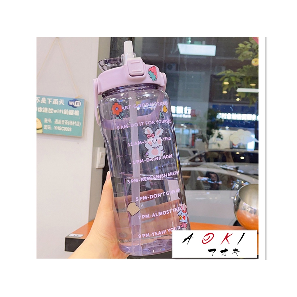 Giới thiệu 【GIAO NGAY】Bình Nước 2 lít Có Vạch Chia Nhắc nhở Uống Thân Bình Trong Suốt Siêu Sang Dễ Thương có TẶNG KÈM STICKER 2D