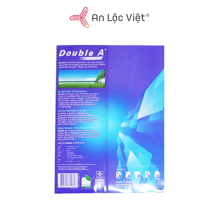 - Double A là nhãn hiệu giấy in photo cao cấp, chất lượng giấy rất tốt, có những ưu điểm về độ trắng sáng, độ sắc nét trong in ấn.vGiấy in A3 Double A 70gsm, 80gsm có kích thước khổ A3, giấy có độ dày phù hợp với các dòng máy in photo hiện đại.