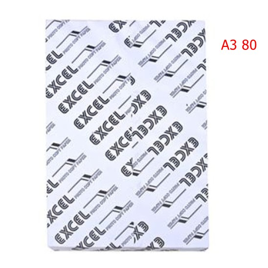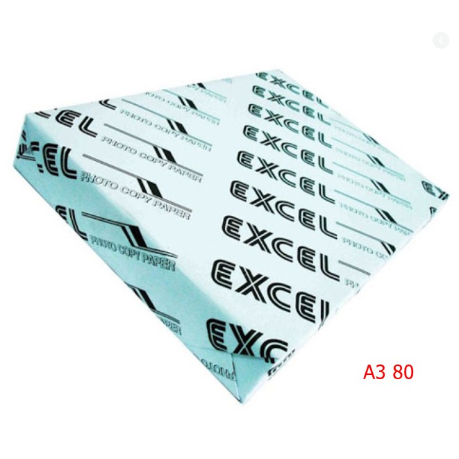 Giấy A3 Excel 80 gsm nhập khẩu Indonesia 450 TỜGiấy A3 Excel 80 gsm là giấy in photo nhãn hiệu Excel Đen - là nhãn hiệu của giấy gói thông dụng trên thị trường hiện nay.