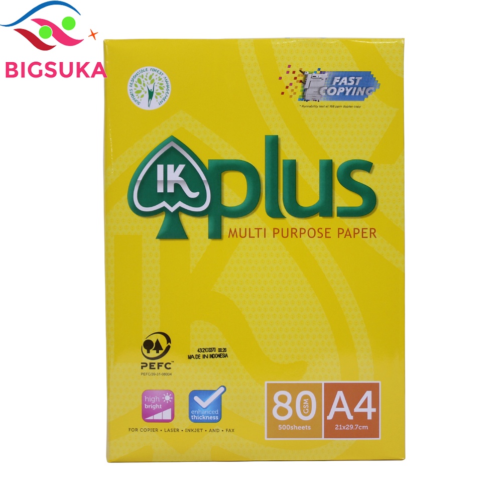 - Giấy in A4 IK Plus với định lượng 80gsm là loại giấy in rất phổ biến trên thị trường, được sản xuất dựa trên công nghệ in ấn hiện đại đến từ Indonesia.