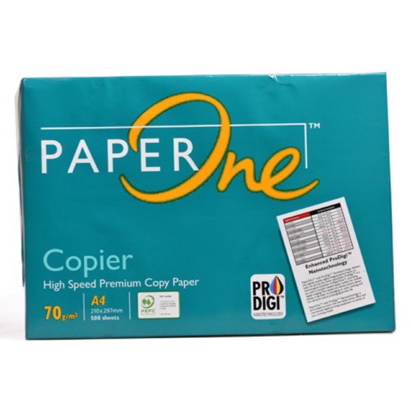 Giấy A4 Paper One 70 gsmLà loại giấy phổ biến và thông dụng, sử dụng để in - photo đóng thành cuốn hoặc dùng làm phiếu thu - chi - xuất - nhập - đơn đặt hàng, định lượng 70gsm.