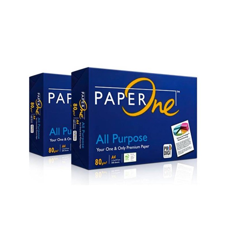 Giấy PaperOne A4 - 80gsm : Loại giấy trắng đẹp, thích hợp với tất cả các loại Máy in phun, Máy in Laser, Máy Fax laser, Máy Photocopy. In đảo 2 mặt không lo kẹt giấy. Giấy được đóng gói và nhập khẩu từ Indonesia nên Giấy PaperOne A4 - 80gsm luôn đảm bảo chất lượng cũng như độ ổn định.