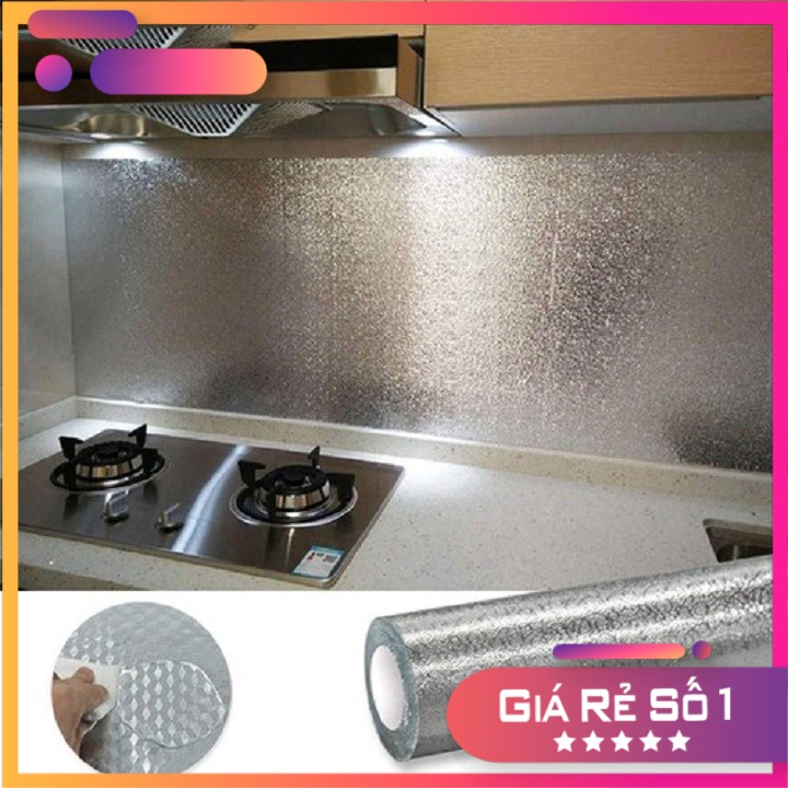 Giấy Bạc Dán Bếp ⚡FREESHIP⚡ Giấy Nhôm Dán Tường Nhà Bếp Kích Thước 3M x 60CM Chống Thấm Nước, Chống Dầu mỡ, Chịu Nhiệt