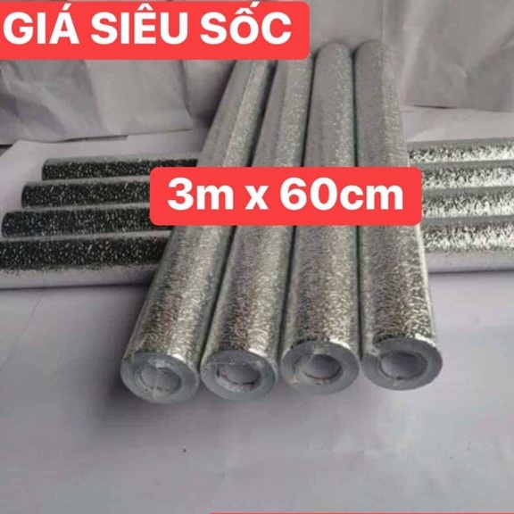 🆘Giấy bạc dán bếp tráng nhôm cách nhiệt màu bạc🆘Kích thước:60cm x (2M->2,5M) hàng về theo lô, hiện tại loại 3m các nhà máy ko sản xuất nữa ạ
