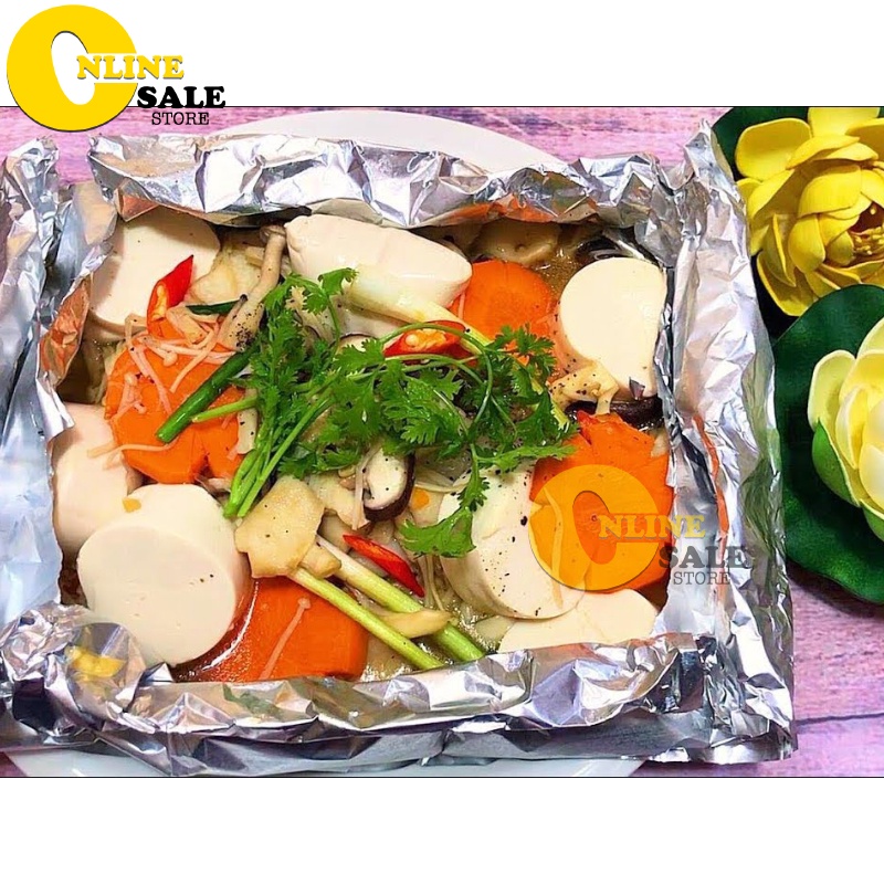 ✔ Giấy bạc được phủ lên trên khay/khuôn nướng, giúp giữ hơi nước bên trong khay thức ăn, không bị bay hơi hay mất mùi.