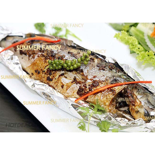 - Chất liệu: giấy bạc mỏng, mềm , dễ dàng tạo hình để bọc thực phẩm- Được dùng trong các món nướng, đút lò,..