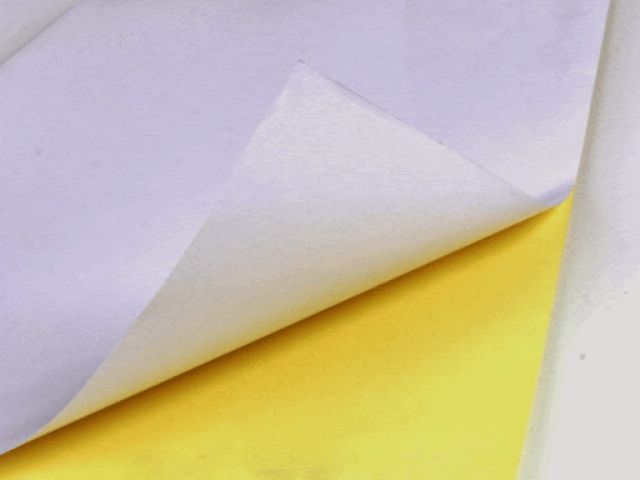 Mặt sau của giấy Decal đế vàng có phủ keo dùng để dán lên sản phẩm.
