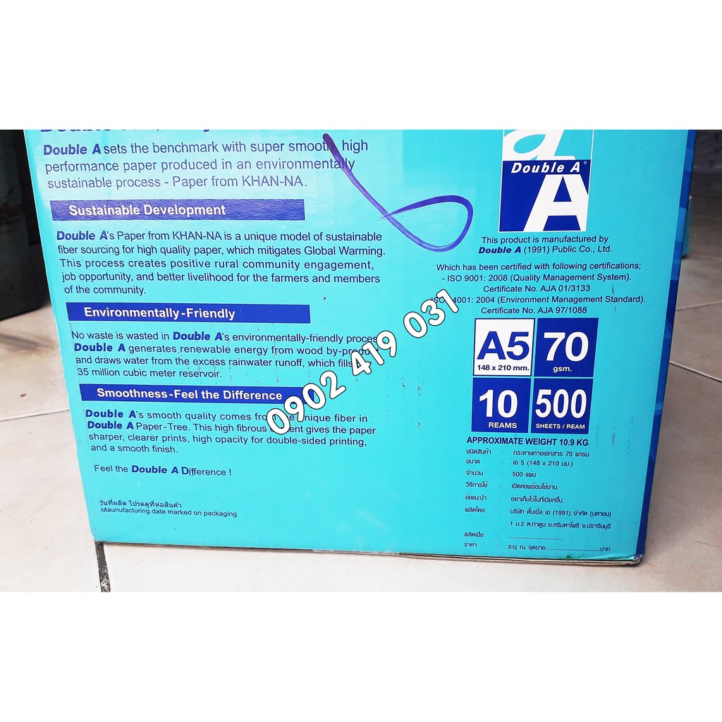 QUY CÁCH: 1 REAM / 500 TờGiấy Double A A5 định lượng 70 gsm. Là loại giấy trắng đẹp nhất trên thị trường, độ sắc nét cao, in 2 mặt không bị kẹt giấy, cho phép in, photocopy ra những văn bản, hình ảnh đẹp.