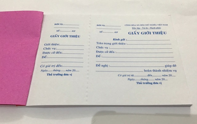 Giấy giới thiệuĐơn vị tính: quyển (50 tờ)