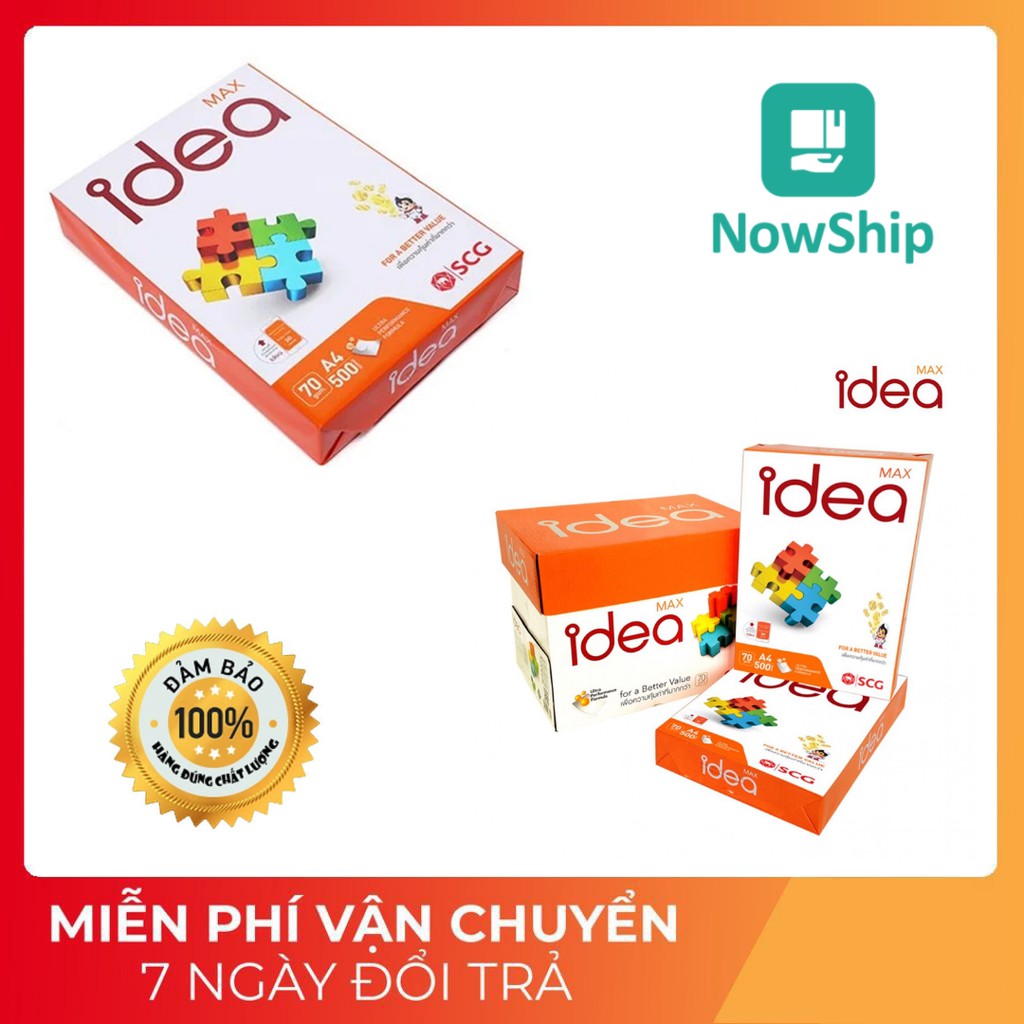 - Giấy Idea là loại giấy trắng đẹp, thích hợp với tất cả các loại Máy in phun, Máy in Laser, Máy Fax laser, Máy Photocopy. - Giấy có độ sắc nét cao, In đảo 2 mặt không bị kẹt giấy.