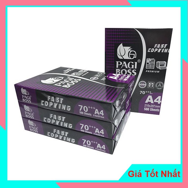 - PAGI BOSS TÍM là loại giấy có độ trắng cao, mặt giấy láng và rất mịn in hai mặt mà không bị nhăn và lem mực,sắc nét cao, không bụi, khổ giấy chuẩn tuyệt đối chính xác, in 2 mặt không bị kẹt giấy, cho phép in, photocopy ra những văn bản, hình ảnh đẹp. Khách hàng có thể hoàn toàn yên tâm về chất lượng và giá cả khi sử dụng.