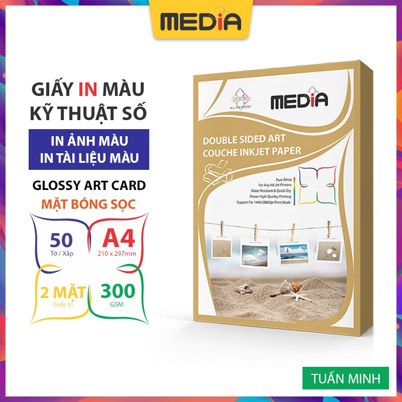 Giới thiệu Giấy In Phun Màu Media Khổ A4 Bề Mặt Bóng Sọc Card (Glossy Art) Giấy 2 Mặt In Định Lượng 300gsm 50 tờ