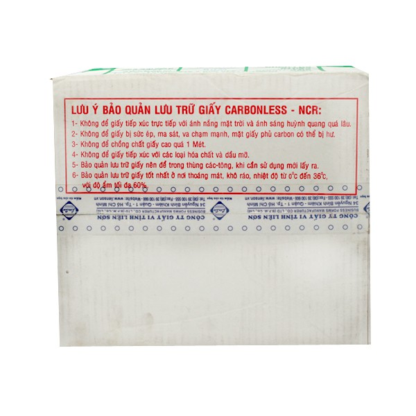 Loại giấy màu Carbonless, liên tục đục lỗ chuyên dùng cho máy in kim.Bề mặt giấy láng đều, không có bụi giấy, không bị kẹt giấy, ít hao mực