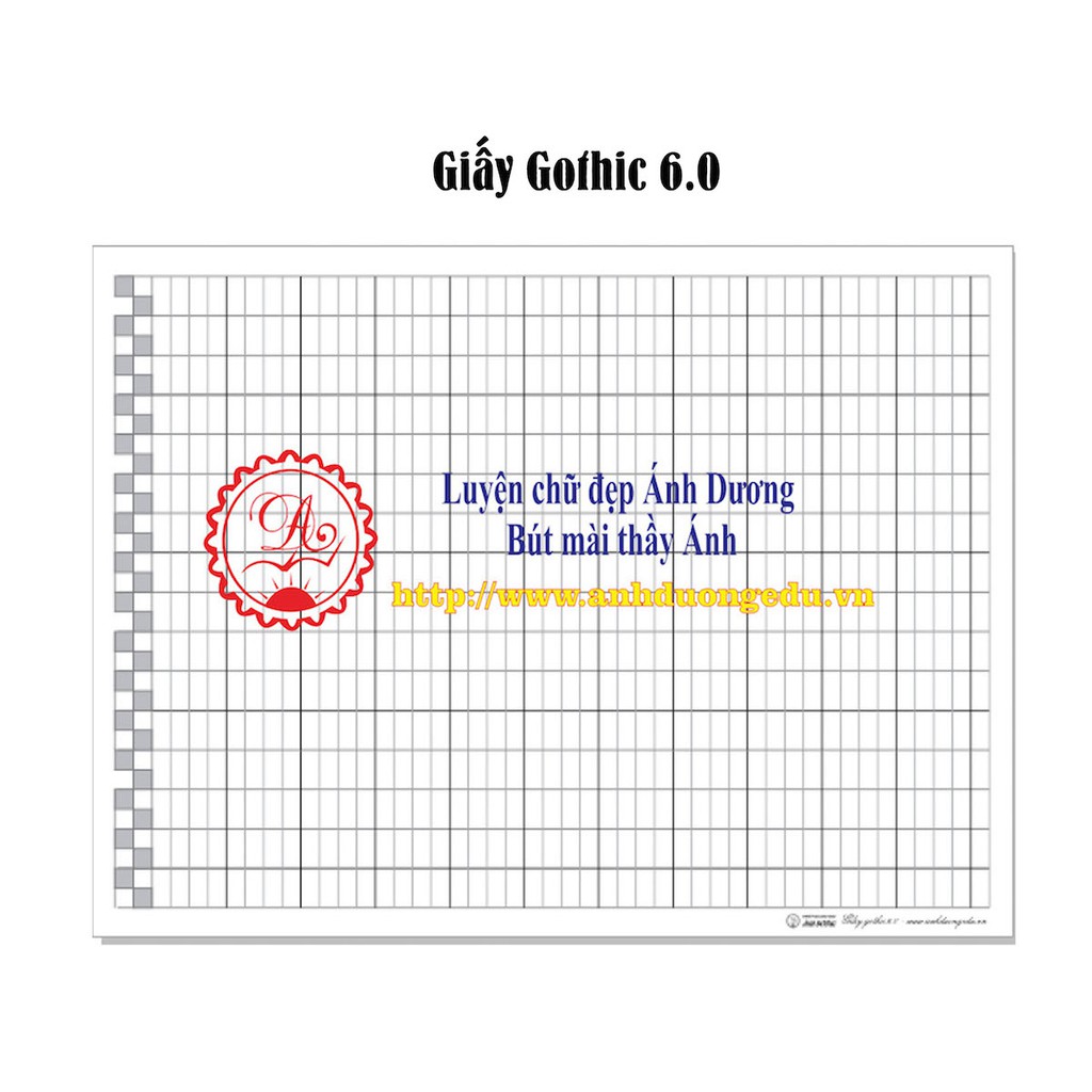 Giấy luyện chữ đẹp Gothic Ánh Dương 2 mặt dễ sử dụng không nhòe không thấm mựcGiấy luyện chữ đẹp Gothic không nhòe không thấm mực chống lóa 2 mặt cao cấp. Sản phẩm có độ trắng 90-95 ISO chống lóa mắt. Giấy luyện chữ đẹp phù hượp với người luyện chữ Gothic giúp thoải mái, tự tin hơn khi viết.
