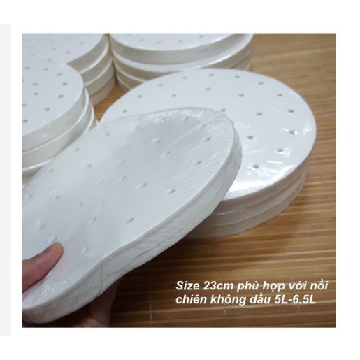 ✔ Đường kính giấy nến nên nhỏ hơn đường kính lòng của giỏ chiên/xửng tầm 2cm.