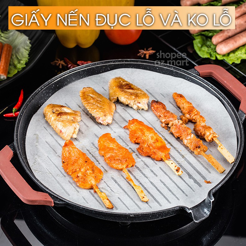 Giấy Nến Đục Lỗ - Giấy Hấp Dimsum - Giấy Lót Nồi Chiên Không Dầu Không Lỗ