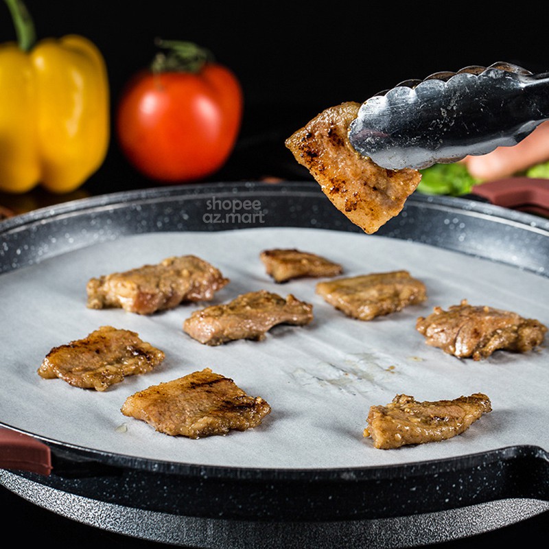 ✔ Chỉ cần lót 1 tấm giấy nến đục lỗ sẵn này lên trên lưới, đặt thức ăn đã tẩm ướp gia vị vào và khởi động nồi như bình thường.