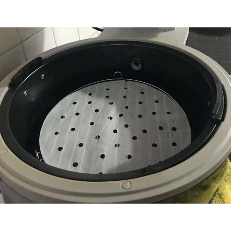 – Chỉ cần lót 1 tấm giấy nến đục lỗ sẵn này lên trên lưới, đặt thức ăn đã tẩm ướp gia vị vào và khởi động nồi như bình thường