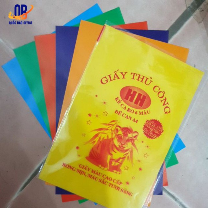 GIẤY THỦ CÔNG HH CÓ KẺ- ĐỀ CAN MÀU BÓNG CAO CẤP ( 5 mầu)Giấy thủ công HH 5 màu được làm từ chất liệu giấy mềm mịn, trơn, sáng bóng, an toàn cho sức khỏe người sử dụng và thân thiện với môi trường.