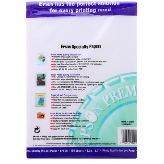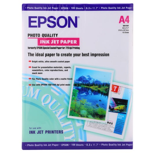 Giấy in có phun 1 lớp thuốc trên bề mặt có khả năng in màu, nhãn hiệu Epson, kích thước khổ A4, giá thành tương đối rẻGiá $LSD