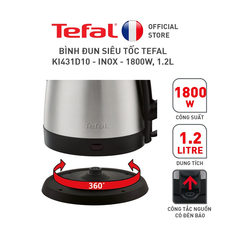 Thiết Bị Điện Gia Dụng > Đồ gia dụng nhà bếp > Ấm đun siêu tốc || [GIFT] Bình đun siêu tốc Tefal KI431D10 - inox - 1800W, 1.2LCòn hàng