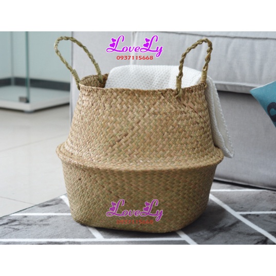 Giỏ cói trồng cây đựng quần áo/decor tự nhiên có quai/giỏ cói đựng đồ nhiều kích thước