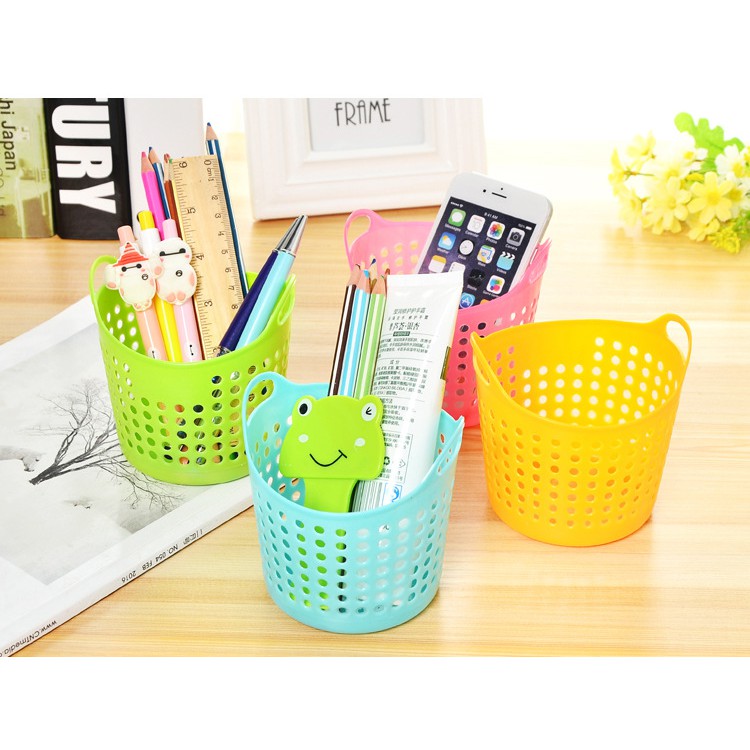 Một chiếc giỏ nhựa dẻo xinh xắn để trên bàn làm việc, bàn trang điểm, đựng những vật dụng nhỏ giúp bàn làm việc ngăn nắp hơnnhiều màu sắc
