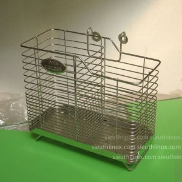 Giỏ đũa inox loại dày, inox 100% đảm bảo không rỉ.2 ngăn,thiết kế có lỗ ở dưới đáy,thoát nước tốt, có lỗ gắn vít và thiết kế kèm ngoắc,ngoắc trực tiếp vào kệKích thước