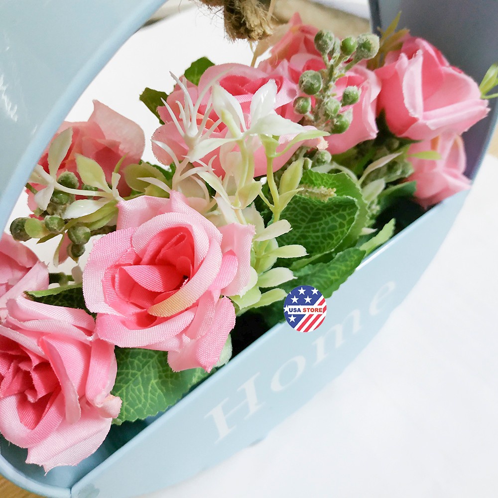 Giỏ hoa có thể dùng để treo tường, treo trước cửa nhà hoặc để bàn đều vô cùng độc đáo mang phong cách vintage và an toàn cùng màu sắc ấn tượng và rực rỡ tạo điểm nhấn lạ mắt.