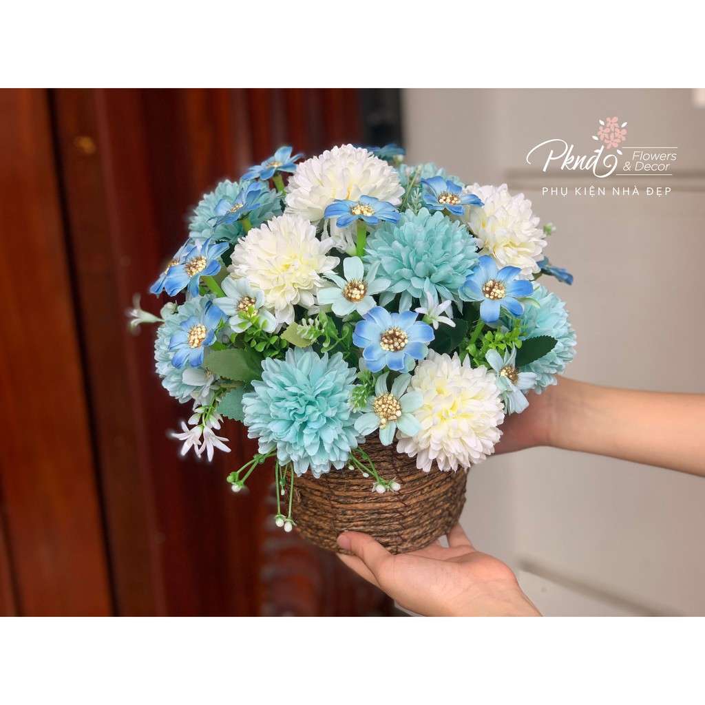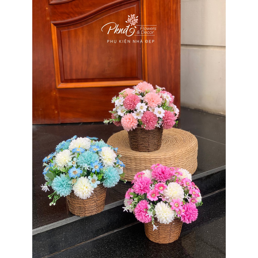 Giới thiệu Giỏ Hoa Cúc Ping Pong Chất Lụa Nhiều màu - Trang trí kệ tivi,kệ trưng bày phòng khách PKND FLOWERS & DECOR