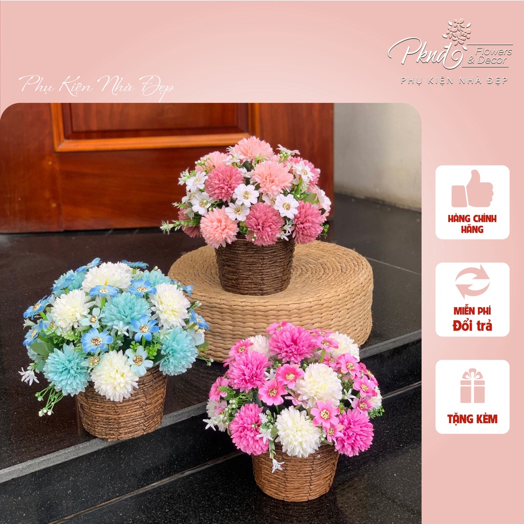 Nhà cửa & Đời sống > Trang trí nhà cửa > Hoa trang trí || Giỏ Hoa Cúc Ping Pong Chất Lụa Nhiều màu - Trang trí kệ tivi,kệ trưng bày phòng khách PKND FLOWERS & DECORCòn hàng