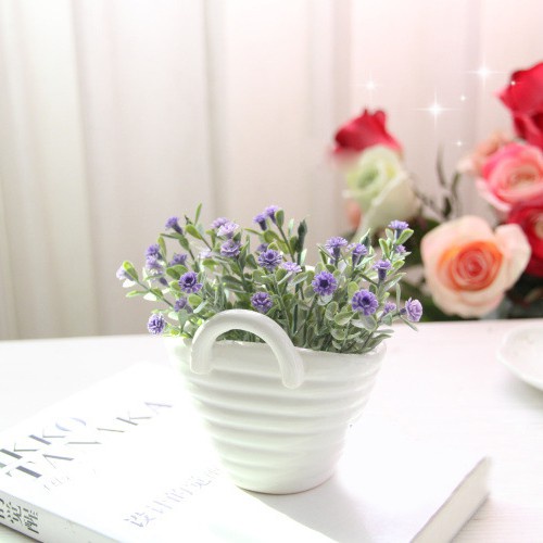 Nhà cửa & Đời sống > Trang trí nhà cửa > Hoa trang trí || Giỏ Hoa Lụa Để Bàn 17cm - Kiểu Làn Xách Tay - Phong Cách Zak - Décor 17cm - Giỏ Sứ (Đã Có Hoa)Còn hàng