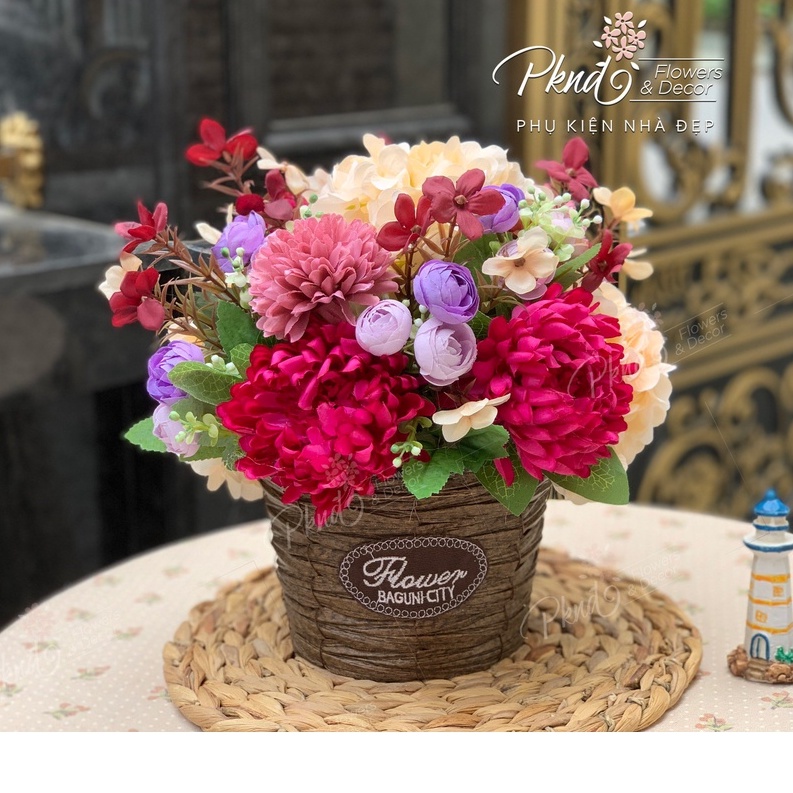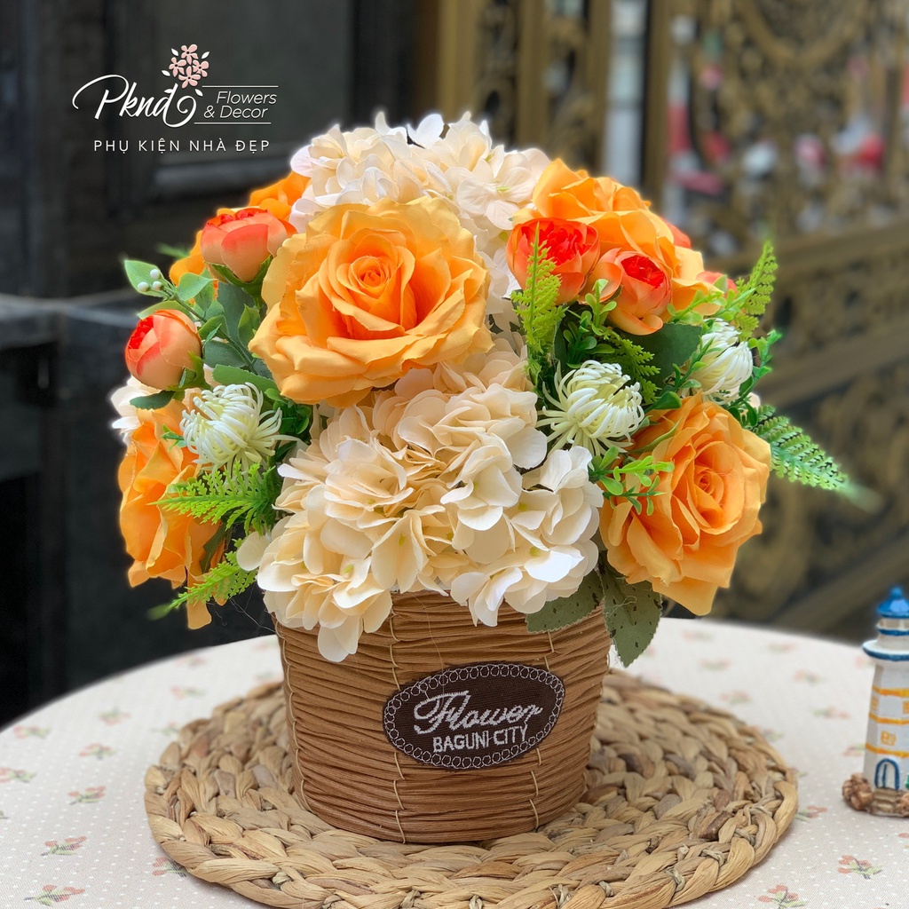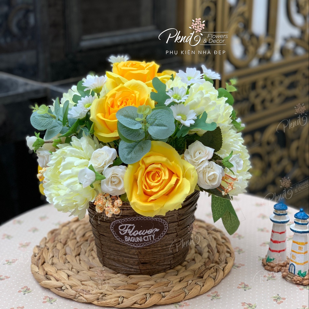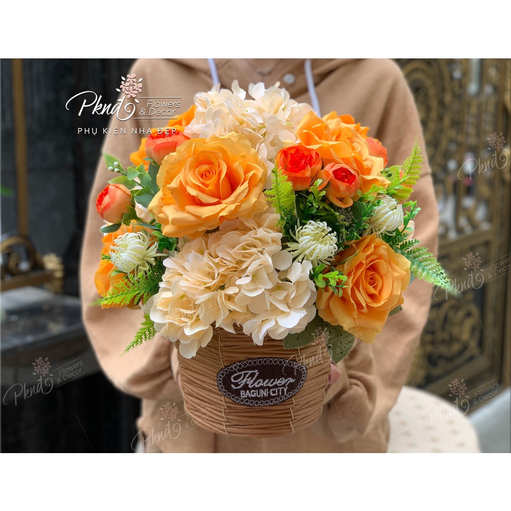[Mã BMBAU50 giảm 7% đơn 99K] Giỏ Hoa Lụa Vintage To Đẹp Rực Rỡ Sắc Màu PKND FLOWERS & DECOR