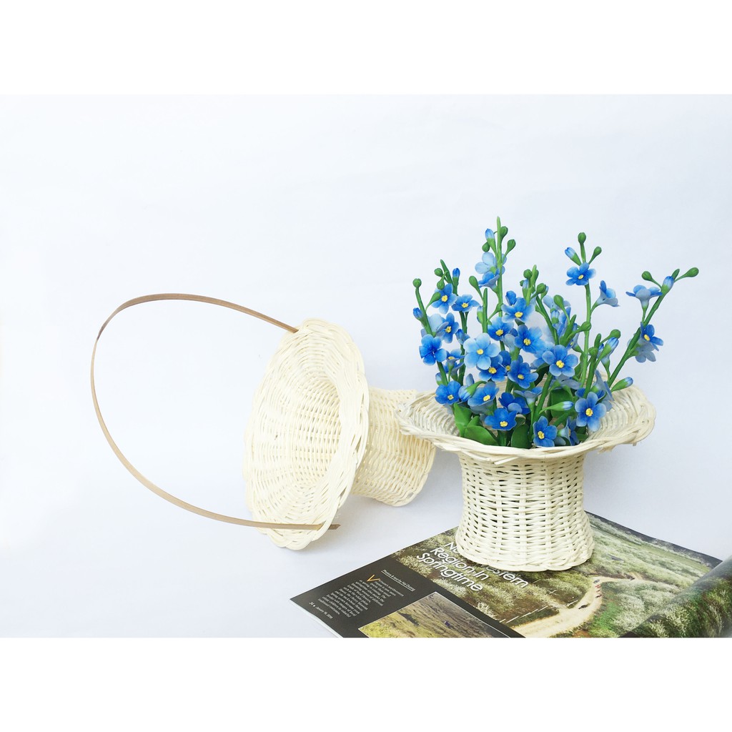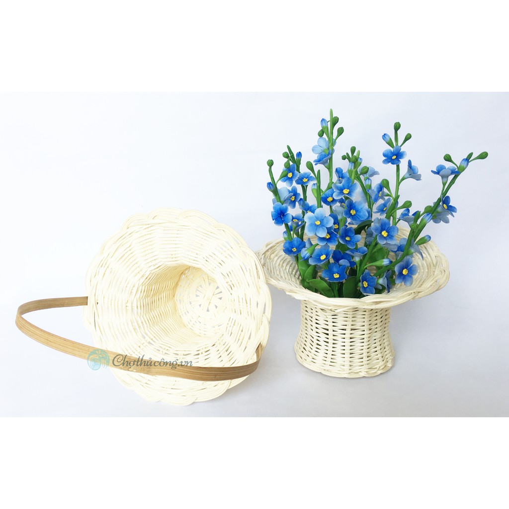 Giỏ mây lẵng hoa đan bằng mây tự nhiên 100% BVMT KT M23xĐ13xC12cm (có quai rời gắn vào tùy ý) cắm hoa, đựng trái cây