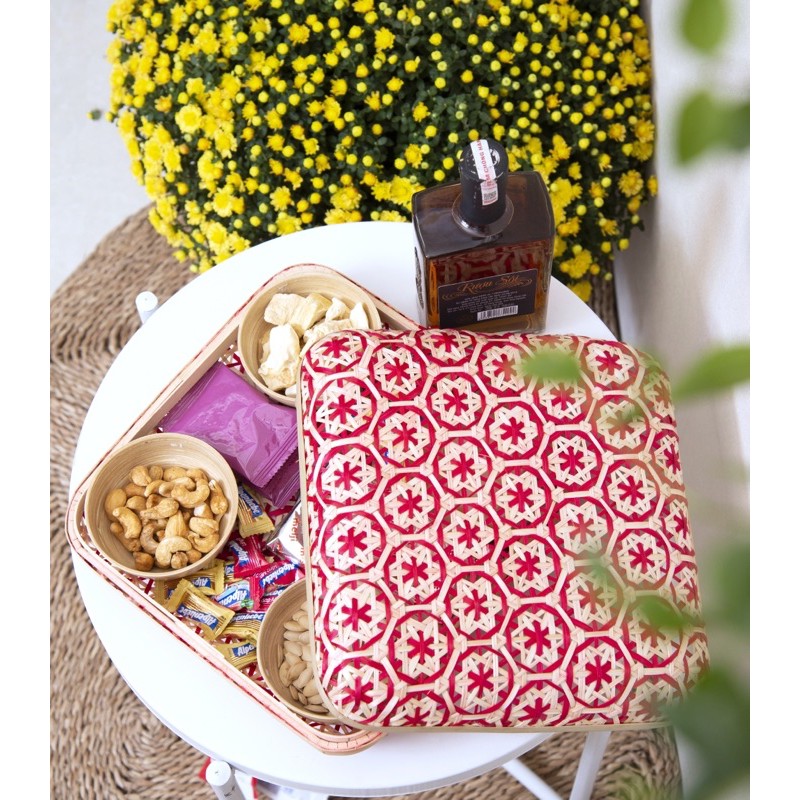 CÔNG DỤNG: Giỏ Mây Tre Đan Thủ Công Họa Tiết Hoa Đào được đan bằng sợi tre tự nhiên hoàn toàn thủ công, phù hợp cho các món quà truyền thống