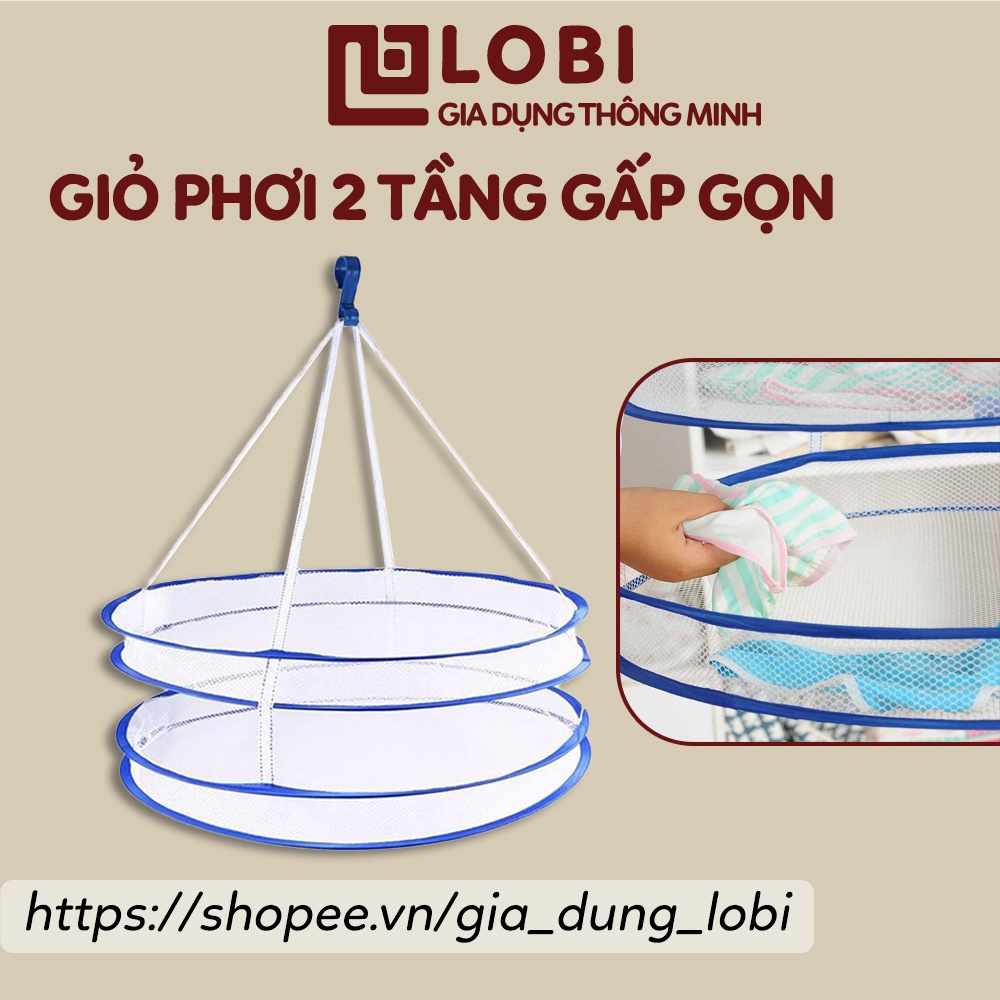 Giỏ phơi 2 tầng gấp gọn phơi đồ lót tất đồ cho em bé, Dây phơi & giá phơi quần áo gấp gọn- Ngoài quần áo, hằng ngày các chị em phụ nữ còn phải giặt thêm những thứ có kích thước nhỏ như tất, đồ lót,... rất dễ bay và thất lạc.