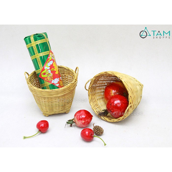 Giỏ tre mini cần xé hai quai cầm trang trí xinh xắn. Khi nhắc đến Tết cổ truyền, trong tiềm thức của mỗi con người sẽ gợi nhớ đến hình ảnh gia đình đang quây quần bên nhau dưới mái nhà tranh vách nứa mộc mạc. Những vật dụng làm bằng mây tre nứa như mẹt, thúng, quang gánh… là những hình ảnh quen thuộc với đời sống sinh hoạt thường ngày của người dân Việt Nam xưa…CHI TIẾT SẢN PHẨM: