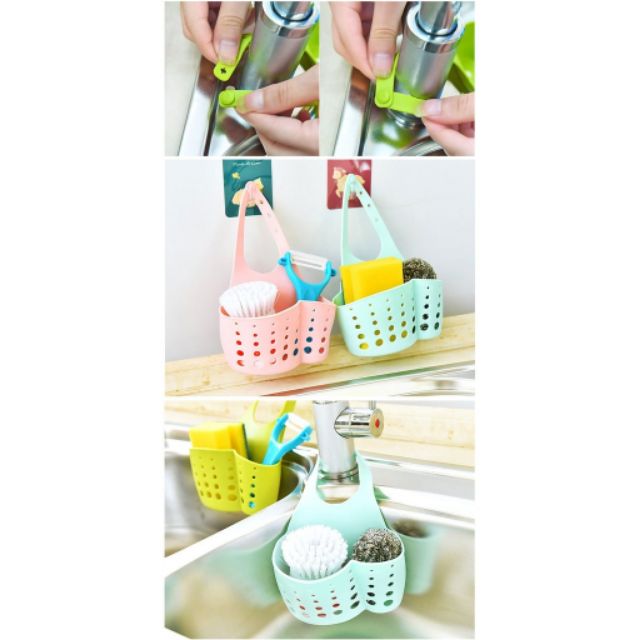– Quai đeo có khuy cài chắc chắn giúp bạn treo giỏ ngay trên vòi nước thật tiện lợi. Bạn có thể treo ở vòi rửa bát, vòi sen tắm hay vòi chậu Lavabo đều được.