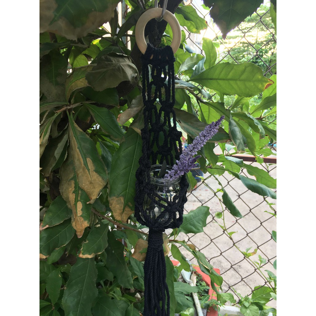 Giỏ treo chậu cây macrame mini, cỡ nhỏ để treo cây không khí hoặc trang trí làm vườn | Macrame plant hangingSản phẩm được làm từ sợi cotton 90% màu đen