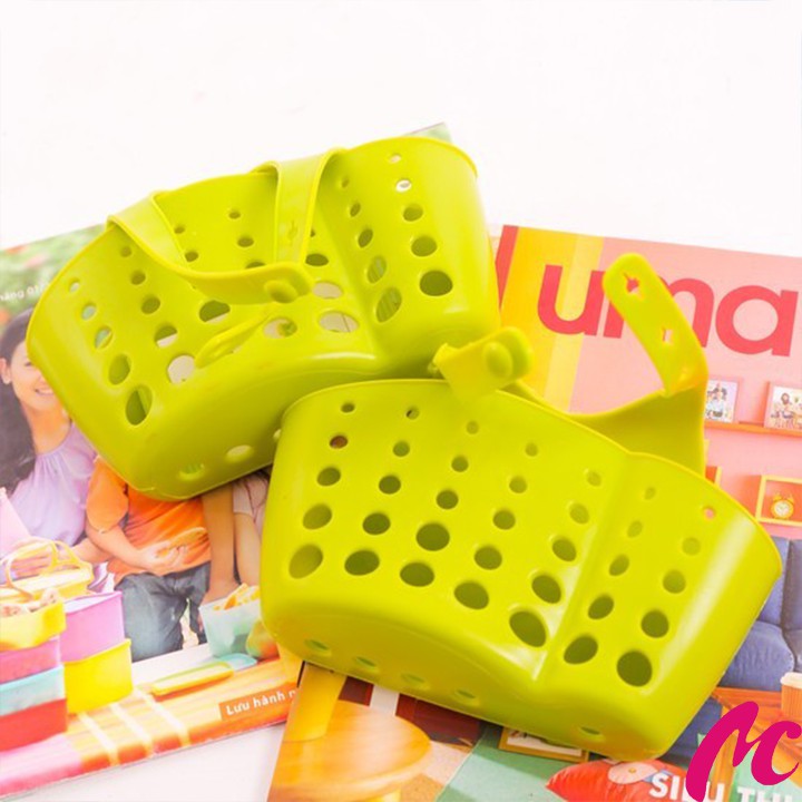 Giỏ treo đồ có móc treo tháo lắp tiện lợi với kích thước nhỏ gọn có thể treo ở nhiều vị trí khác nhau trên tường, hoặc vòi nước… phù hợp với nhà tắm, bếp, nhà vệ sinh,...Đựng được nhiều đồ như: giẻ rửa bát, bàn chải, cọ xoong,... giúp không gian thêm gọn gàng, ngăn nắp. Giỏ Treo Đồ Tiện Ích