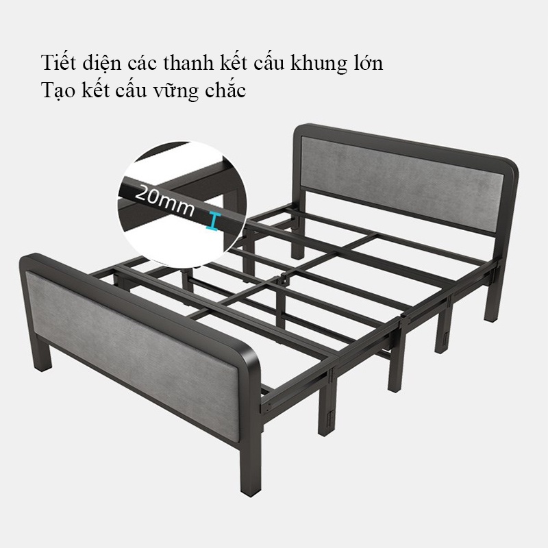 - Kết cấu khung thép phun sơn tĩnh điện chắc chắn, đệm giường 4 lớp có lớp trên cùng bọc vải thoáng khí tạo cảm giác thoải mải