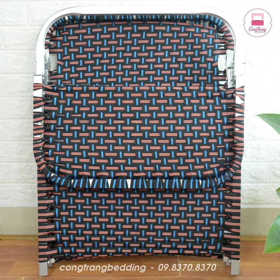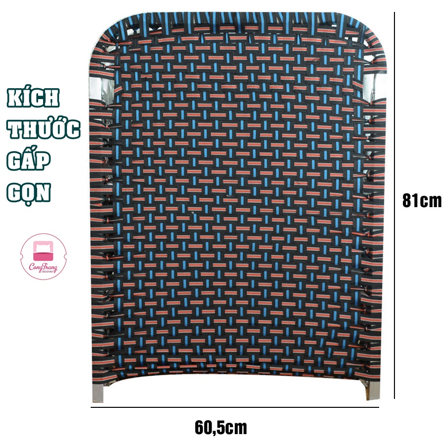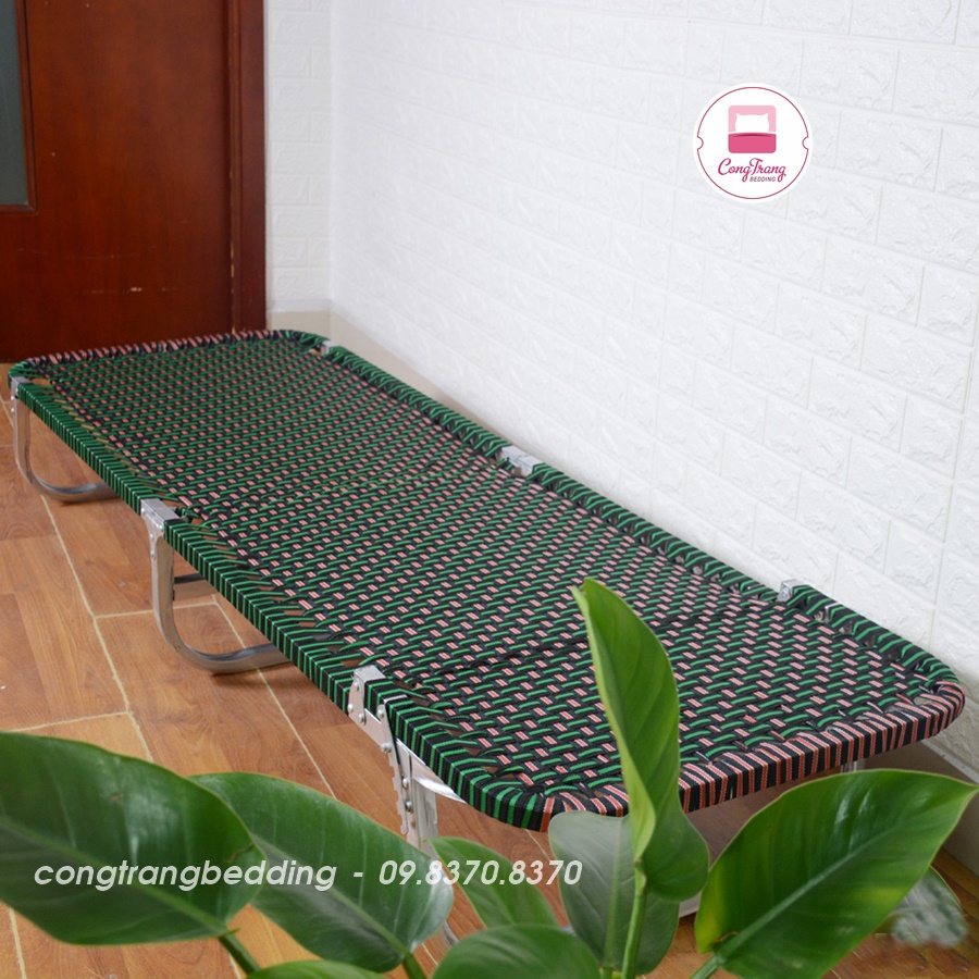 Vật liệu: Giường gấp, giường xếp có khung được làm bằng nhôm tròn, sơn nhũ, dây đai là sợi tổng hợp 20mm.