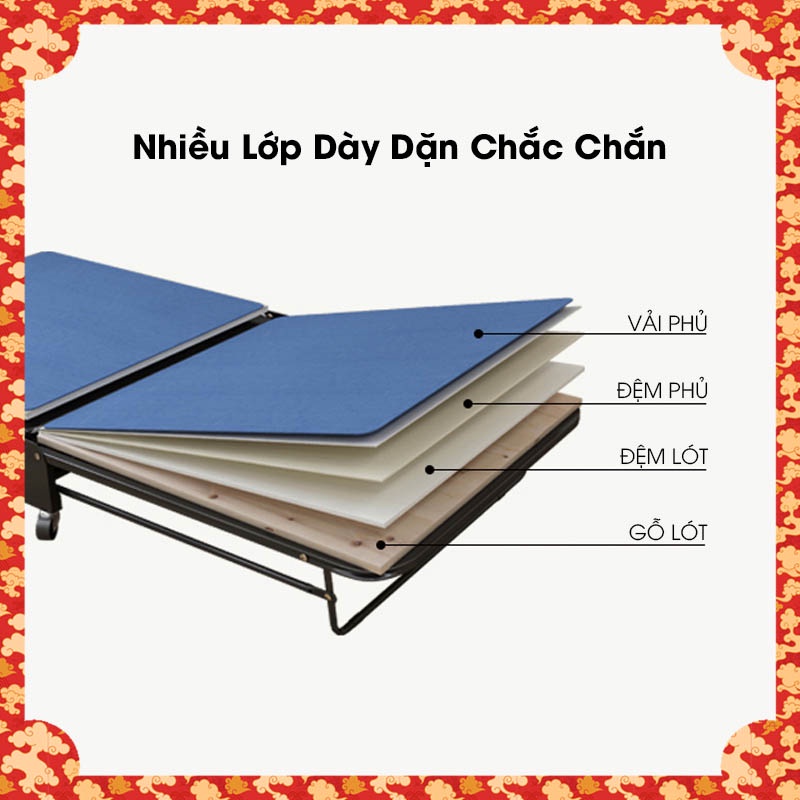 Giường Gấp Văn Phòng Thông Minh Gấp Gọn 20cm Ngủ Trưa Công Sở Có Đệm Dày 5cm Khung Kim Loại Phủ Sơn Tĩnh Điện & Bánh Xe